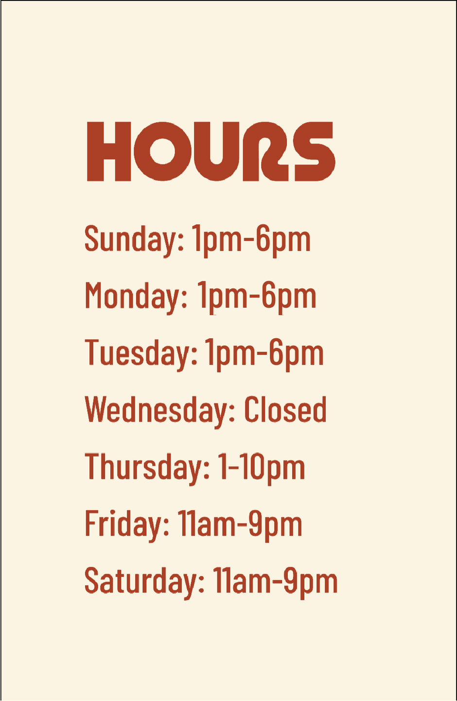 Sunday: 1pm-6pm